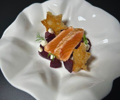 Lachstataki | Rote Bete | Meerrettich | Gewürzcrôutons